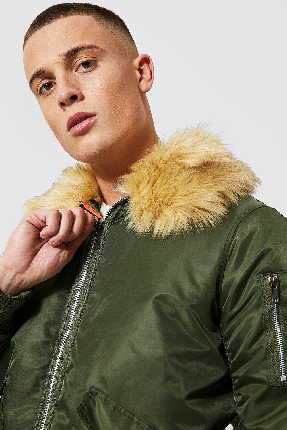 Product Name: Green bomber jacket with fur collar cheap